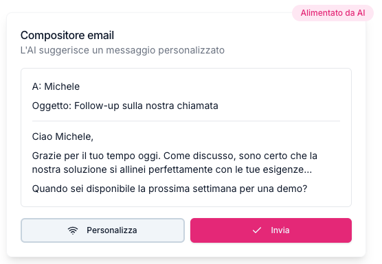 il Lead Scoring con AI identifica automaticamente i prospect più promettenti, permettendoti di concentrare energie e risorse dove contano davvero.